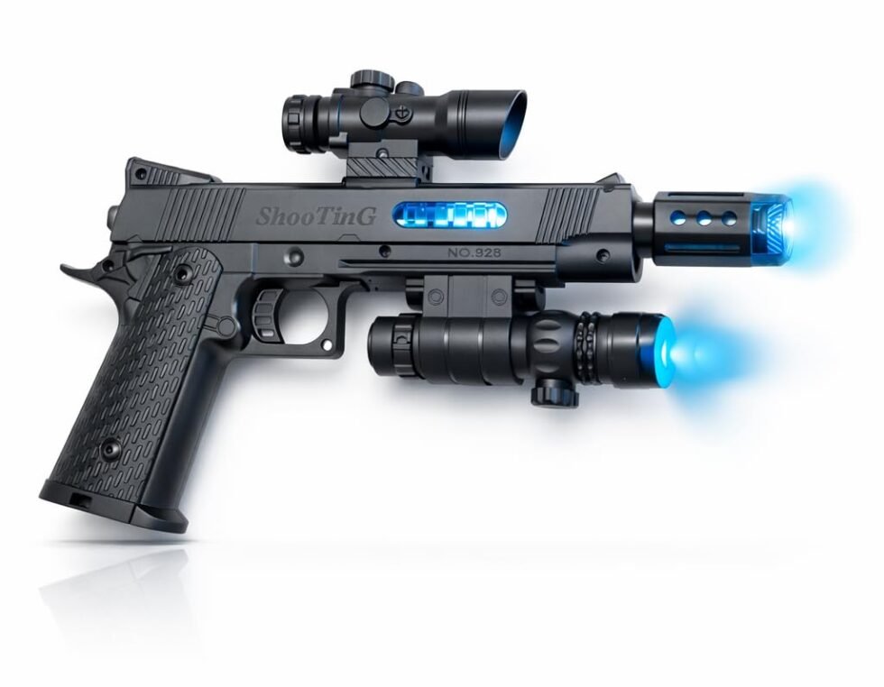 Discover the Kart In Box Electric Projection Pistol, a realistic shooting handgun with LED lights, sound, and projection. Perfect for imaginative play for kids aged 5-12. Read our review!