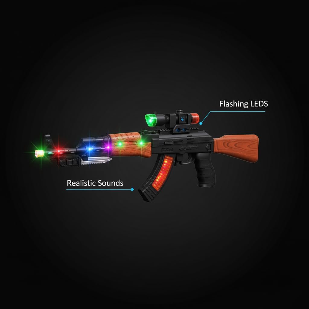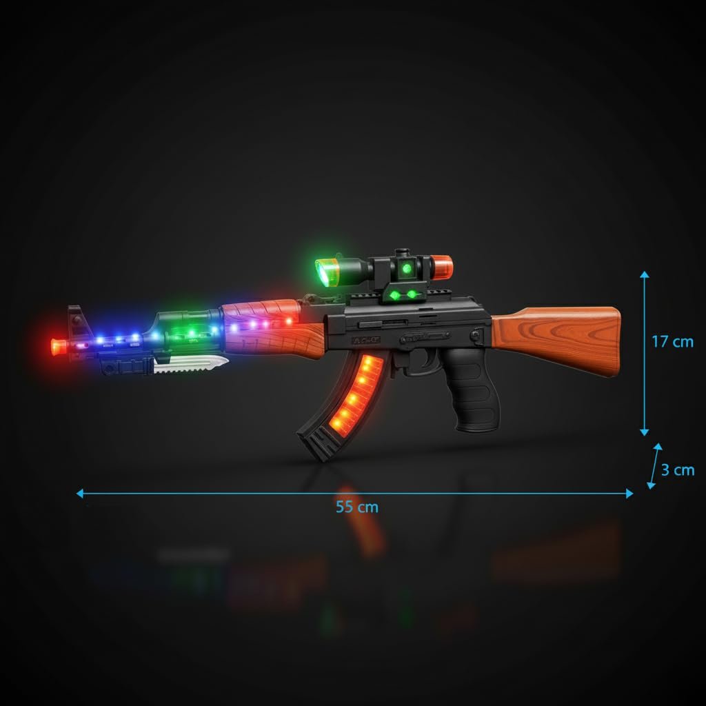 Kart In Box | AK47 Musical Toy Gun with Flashing Lights, Sound for Boys | Battery Operated Kids Electric Musical Machine Gun Toy | Pretend Play Weapon Fun (22 INCH)